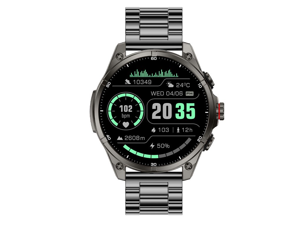 A CARNEO GTR eXpedition pontosan figyeli a pulzusszámot, a stressz-szintet, a BMI-t, a megtett távolságot, az elégetett kalóriákat és az alvás minőségét, így a nap 24 órájában kézben tarthatja a testét. A SUPER AMOLED kijelzőt tartós Gorilla Glass védi, a nagy teljesítményű 650 mAh-s akkumulátor pedig akár 15 napos üzemidőt biztosít normál használat mellett és akár 35 napos készenléti időt*. A beépített GPS pontos útvonalrögzítést biztosít közvetlenül az órán. Az óra teljesen kompatibilis az Android és iOS eszközökkel, támogatja az Apple Health, a Google Fit és a Strava alkalmazásokat, miközben a teljes környezet magyar nyelvű. A fém szíj könnyen cserélhető bőr vagy fém szíjra, aminek köszönhetően az óra a sportos stílusból elegáns megjelenésbe vált, amely illik az öltönyhöz és a szabadidős ruházathoz is.Az intelligens óra jellemzőiCarneo GTR eXpedition