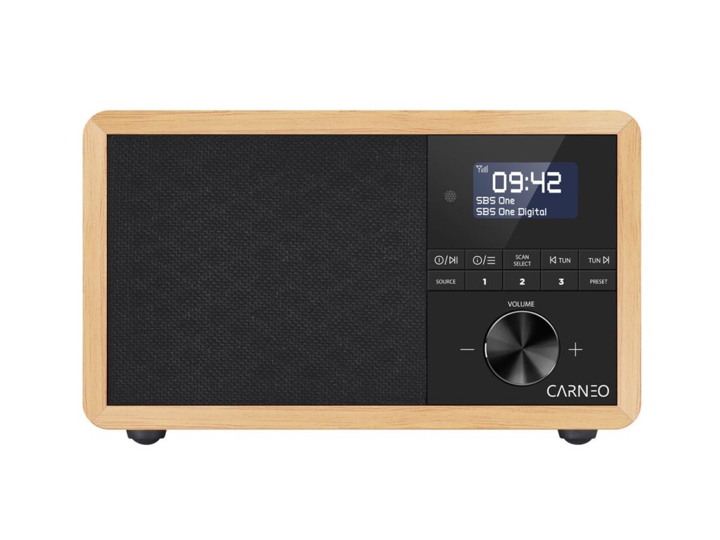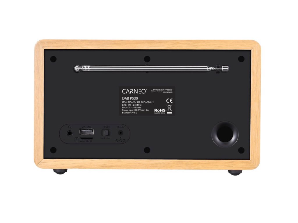 CARNEO P530, DAB+ rádió, FM, BT, ébresztőóra, OLED, wood