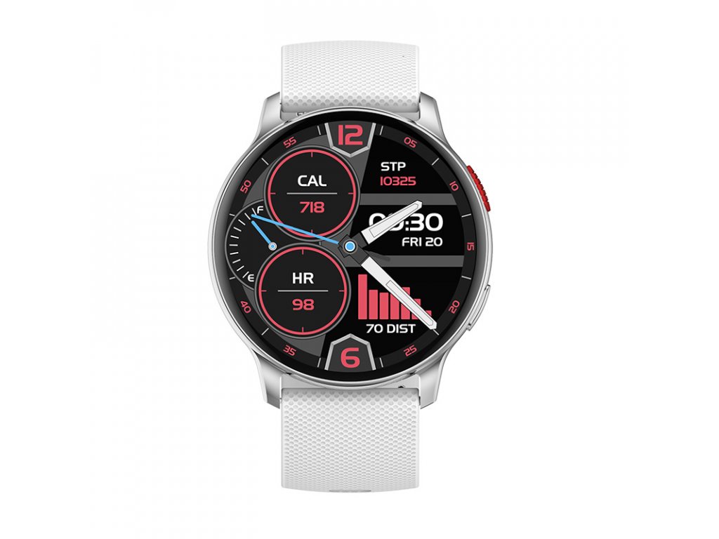 A modern, második generációs Carneo Heiloo HR+ fitnesz okosóra elegáns, ezüst színű, kerek Super HD AMOLED színes kijelzővel rendelkezik. Lehetővé teszi a pulzusszám, a stressz, a BMI, a megtett távolság mérését, nyomon követheted az elégetett kalóriákat és az alvás minőségét. 220mAh-s akkumulátora 3-5 napos üzemidőt biztosít. IP67 tanúsítvánnyal rendelkeznek, így víz- és porálló. Kompatibilisek az iOS és az Android rendszerrel. Az óra kellemes, fehér színű szilikon szíjjal rendelkezik, amely más színű vagy bőrszíjra cserélhető, és így az óra sportos megjelenése menedzseri megjelenésre cserélhető. Az ízléses, egyszerű és fényűző kialakítás könnyen kombinálható öltönyhöz vagy alkalmi öltözékhez. Az óra és az alkalmazás is teljesen magyar nyelvű, így biztosan jól kijöttök majd.Az okkosóra jellemzői Carneo Heiloo HR+ 2. generációs ezüst